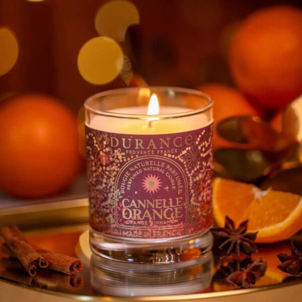 Durance sitt duftlys i varianten Orange Cinnamon / Canelle Orange er en liten hverdagsluksus som både pynter opp på bordet og fyller rommet med en lun og innbydende atmosfære. Lyset kommer i et vakkert juledesign med etiketter som har lekre innslag av gull – perfekt som en vertinnegave, eller når du bare vil unne deg selv litt ekstra hygge i mørketiden.