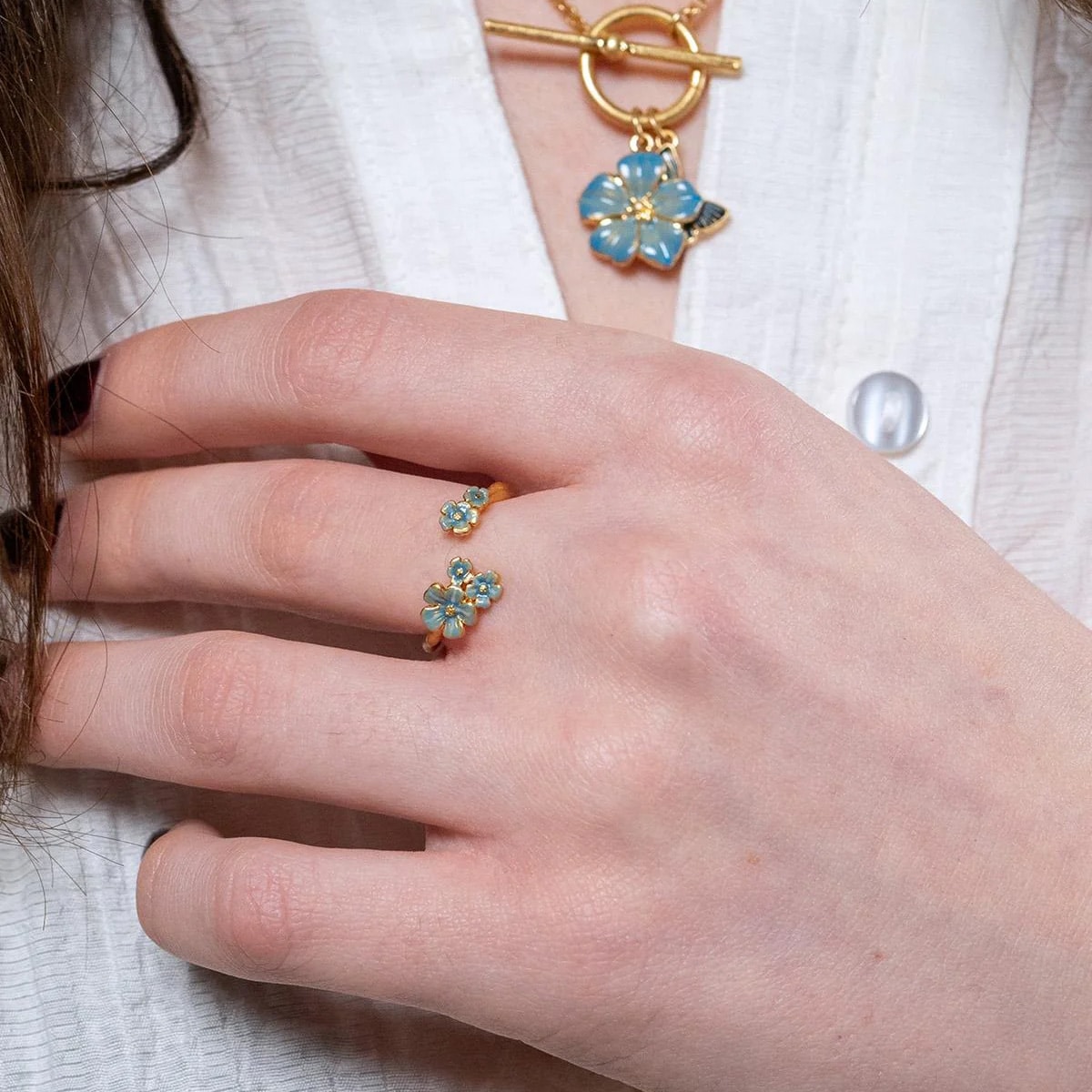 Bær et vakkert symbol på evig kjærlighet og kjære minner på fingeren! 💙🌿 Denne fortryllende og delikate Forget-me-not Ring fra britiske Fable England er som et lite stykke eventyr, hentet rett fra en hemmelig, organisk skogshage.