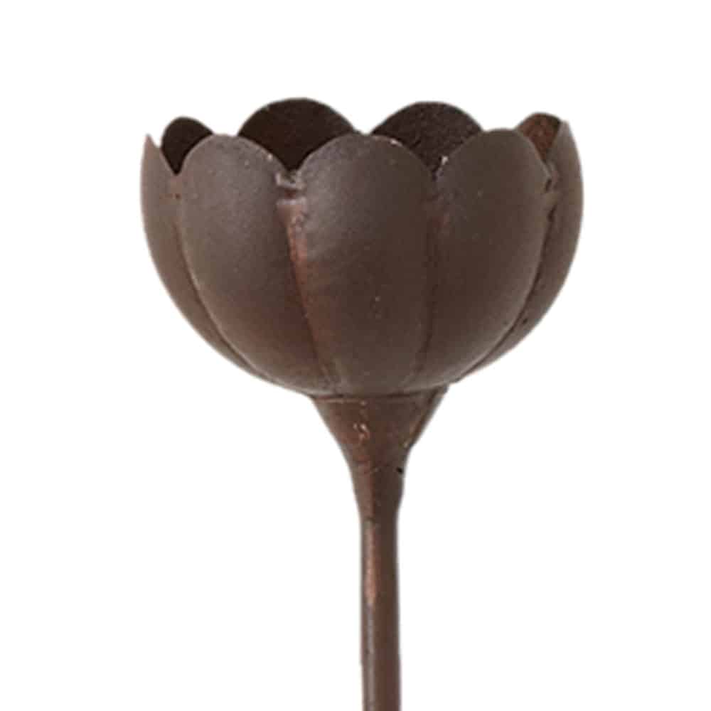 Flott fakkelholder i metall. Sort og stilren, men bringer det lille ekstra med blomster-detaljen på holderen.