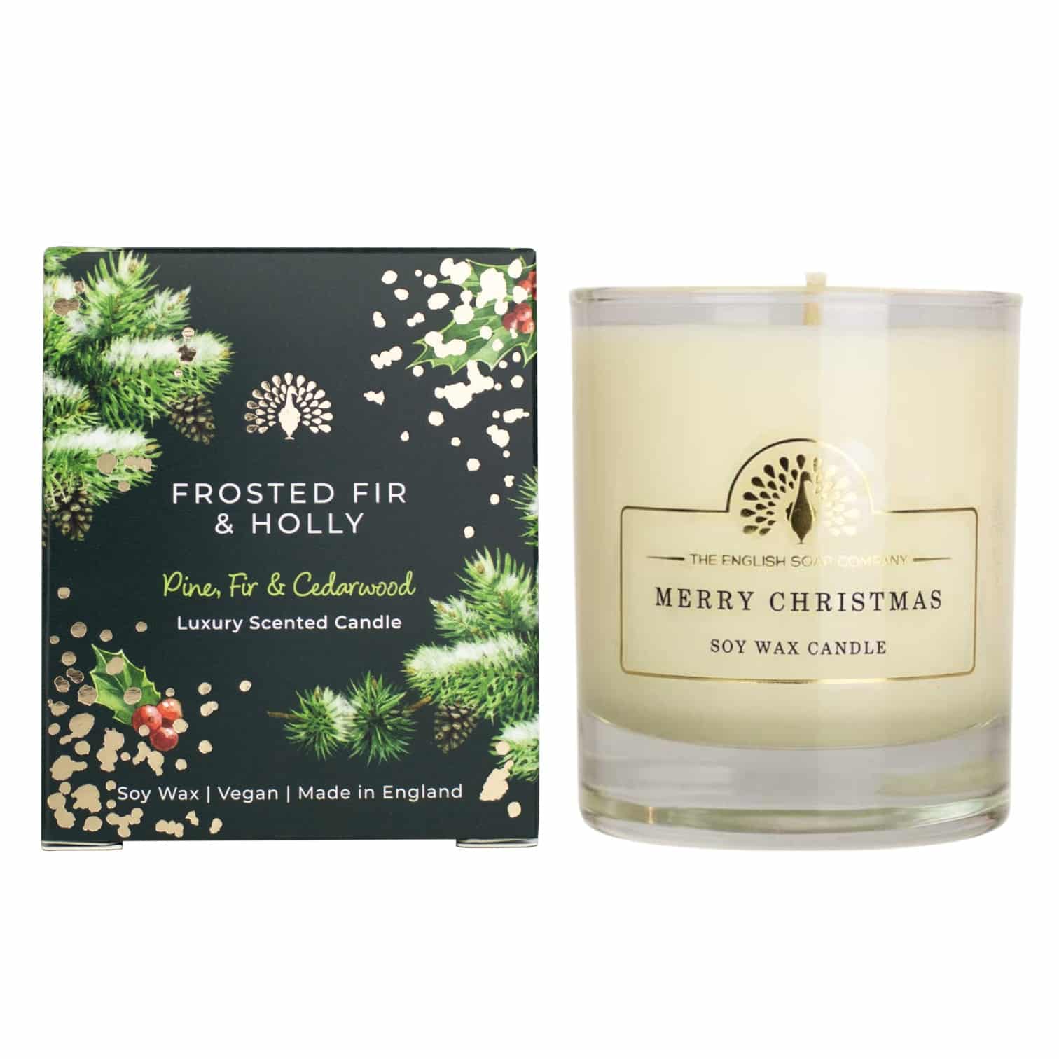 En Duft av Vinterlandskap: «Frosted Fir & Holly» er en sofistikert og stemningsfull duft som vekker minner om en stille tur i skogen. Den åpner med friske toppnoter av furu og sypress, før den mykner inn i et varmt hjerte av sandeltre, sedertre og et hint av krydret kanel. En dyp og rik base av patchouli, røkelse og amber gir duften en elegant og varig avslutning.