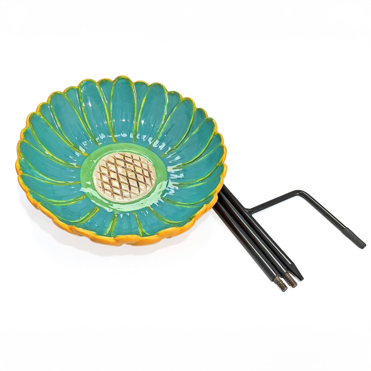 Kombiner dette fine fuglebadet med med de fargerike fuglematerene i samme stil! Vi har både en glad solsikke og en nydelig valmue. Dekorative keramikkblomster i hagen for deg, og en buffet av drikke og godsaker for småfuglene.