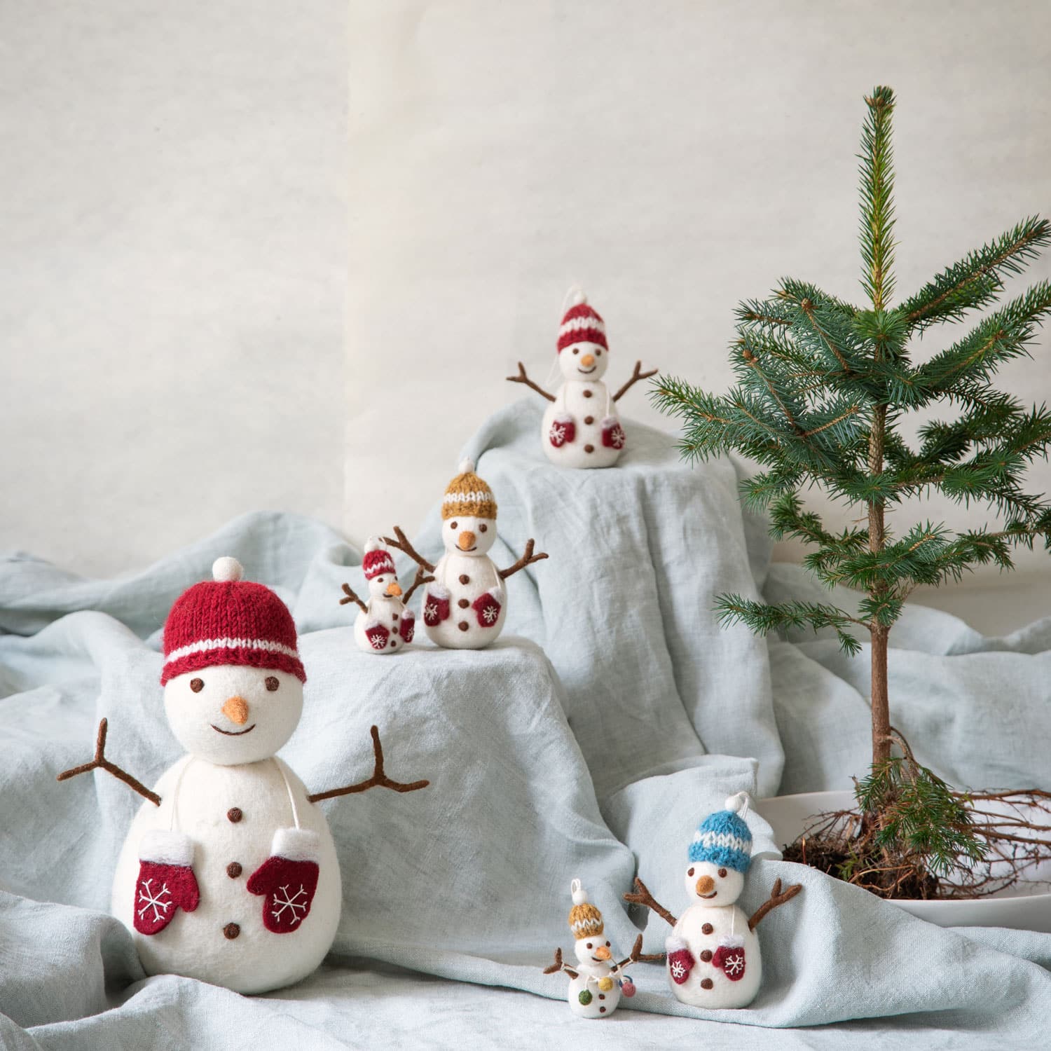 Gry & Sif Liten Snømann (11cm) med lue og votter: Her er den sjarmerende lillebroren i snømann-familien! ☃️❤️ Denne lille, filtede snømannen fra Gry & Sif er full av personlighet, med et gledesfylt uttrykk og søte, rosenrøde kinn. Kledd i en knallrød lue og matchende votter, er han klar til å ønske vinteren velkommen og spre masse juleglede.