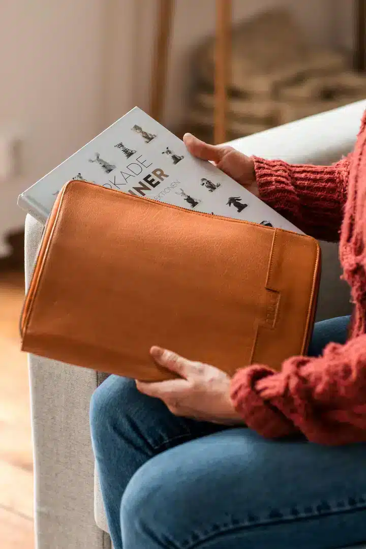 Håndlaget av premium skinn, er Göteborg designet for å kombinere tidløs skjønnhet med holdbarhet. Med mange praktiske lommer og rom, holder vesken utstyret ditt trygt og lett tilgjengelig – enten du er hjemme eller på farten. I tillegg fungerer den også som en mønsterholder, med plass til både strikkepinner, utskiftbare pinner, målebånd og ledninger.
